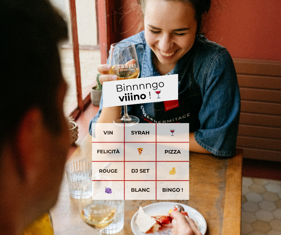 Chaque grille de bingo reprend les mots-clés de dégustation : Syrah, fraîcheur, fruits rouges… Alignez-les et BINGO ! Bref, vous n’aurez jamais autant bu les paroles du sommelier pour gagner le gros lot.